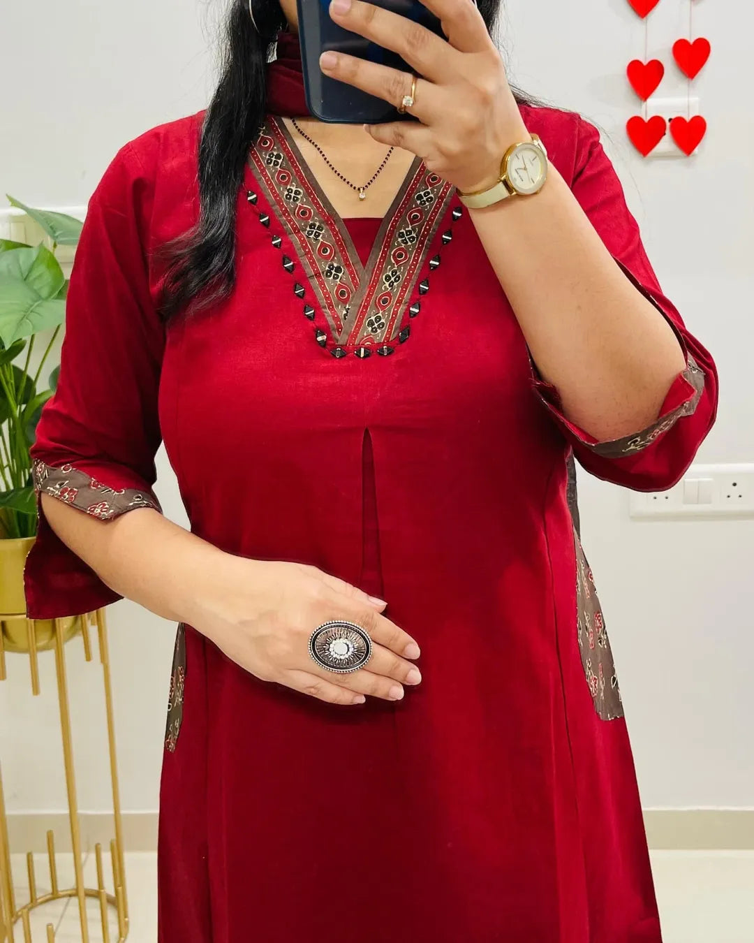 Rust Premium Cotton Co-ord Set Embroidery Work