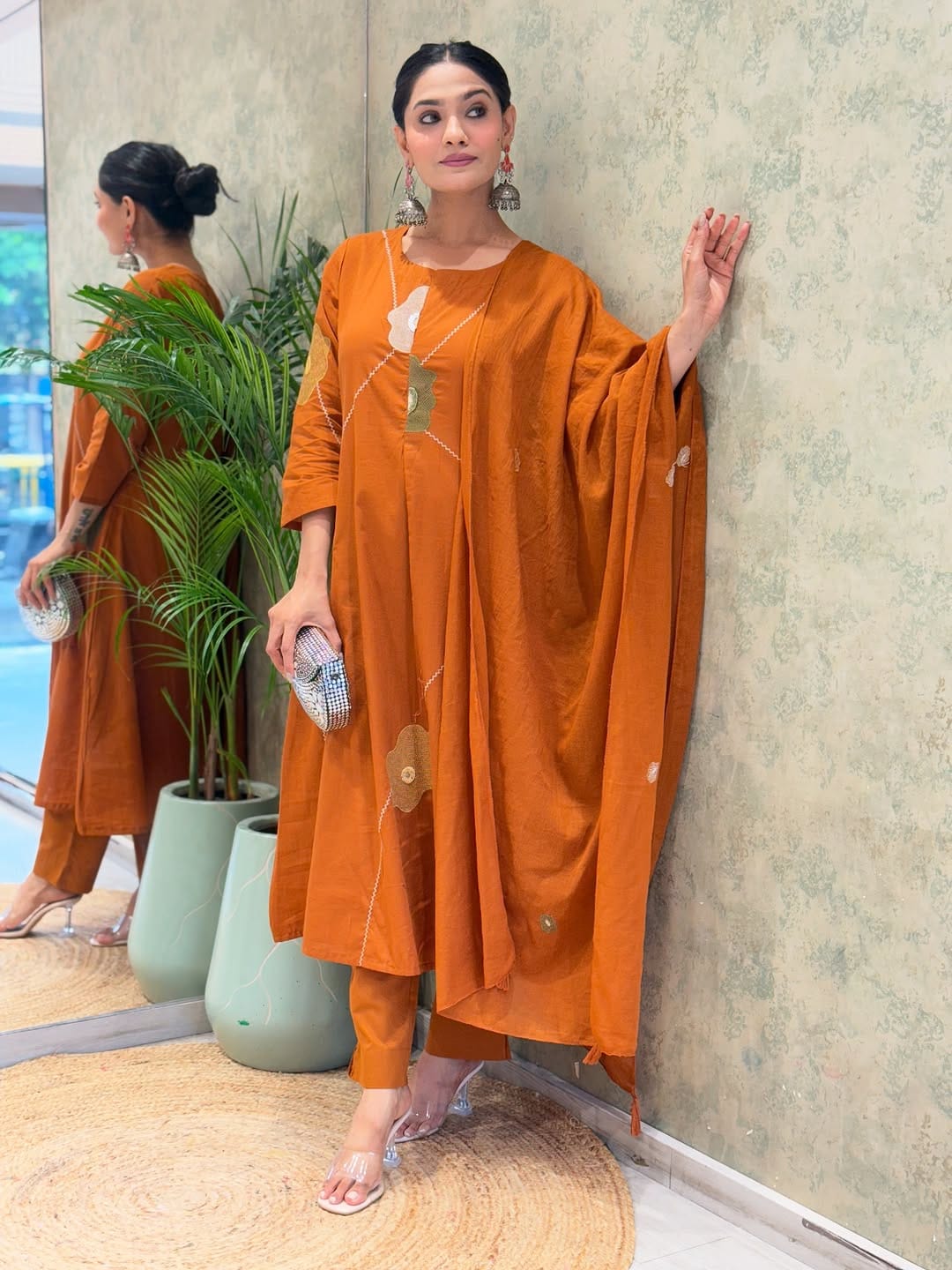 Rust Premium Cotton Co-ord Set Embroidery Work